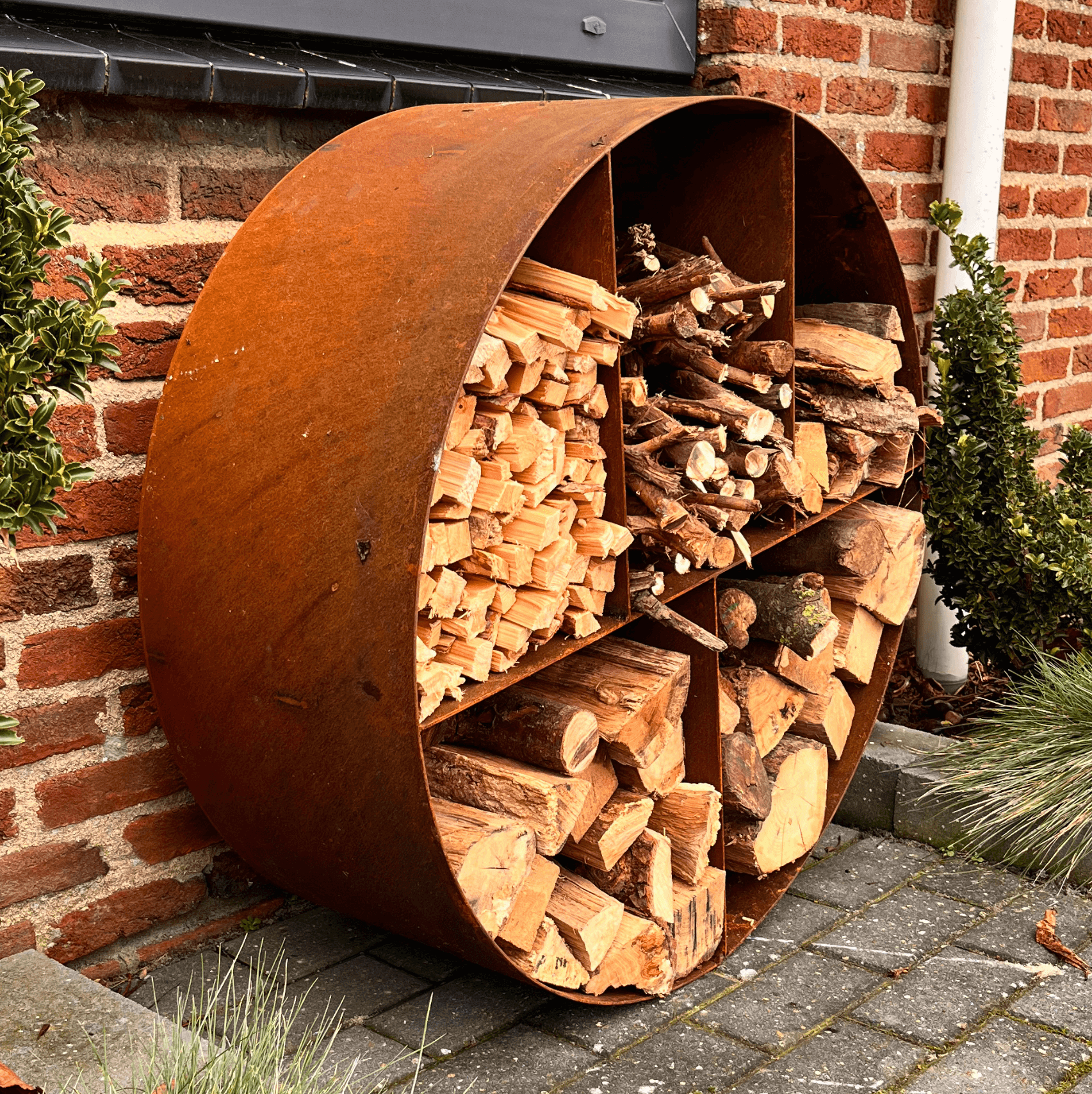 ✔ Weerbestendig & duurzaam – Cortenstaal vormt zelf een beschermende roestlaag, waardoor de opslag jarenlang meegaat zonder onderhoud.